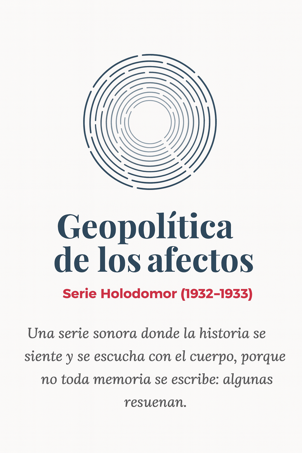 Serie de pódcast que combina el análisis crítico de los hechos históricos con la recuperación de la memoria sonora y gustativa del Holodomor (1932–1933). A través de seis episodios, propone una experiencia de escucha encarnada para con ello visibilizar el trauma histórico, la violencia política y las formas de resistencia cultural del campesinado ucraniano.